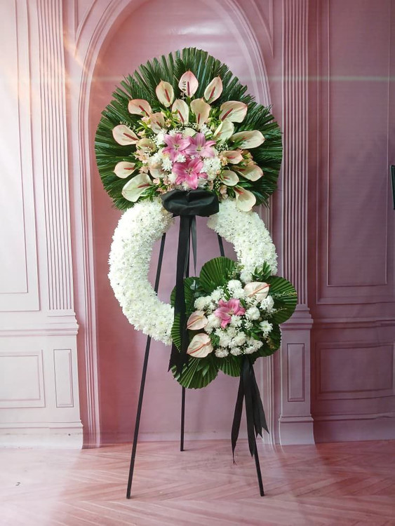 رنگ سفید در این طراحی نماد آرامش، احترام و همدردی است و ترکیب گلهای شاخص آن باعث شده این مدل در مراسم مختلف مثل ختم، هفتم، چهلم و سالگرد جلوهای بسیار مناسب و باشکوه داشته باشد.